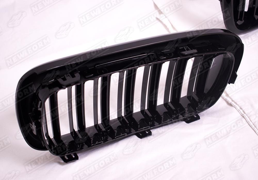 Решетка радиатора X5 M для автомобилей BMW X5 F15. Данная решетка радиатора "ноздри" предназначена для установки на автомобили BMW X5 F15 с 2013 по 2018 год выпуска. Решетка радиатора устанавливается четко в штатные места переднего бампера без доработок. Решетка радиатора X5 M выполнена в черном глянцевом цвете. На решетку радиатора установлен шильдик X5M.