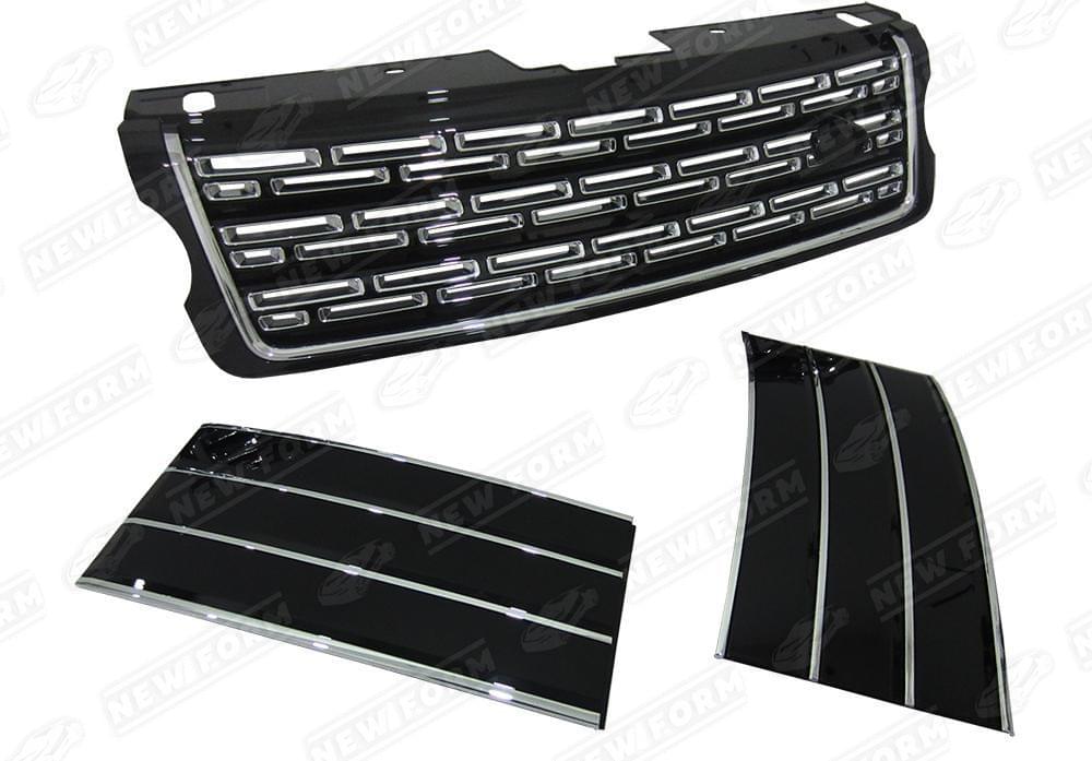 Решетка радиатора черная с жабрами Autobiography для автомобилей Range Rover Vogue. Данный тюнинг комплект предназначен для установки на автомобили Range Rover Vogue с 2012 по 2017 год выпуска. Решетка радиатора и боковые жабры устанавливаются в штатные места без доработок. Решетка радиатора и жабры выполнены в черном цвете.