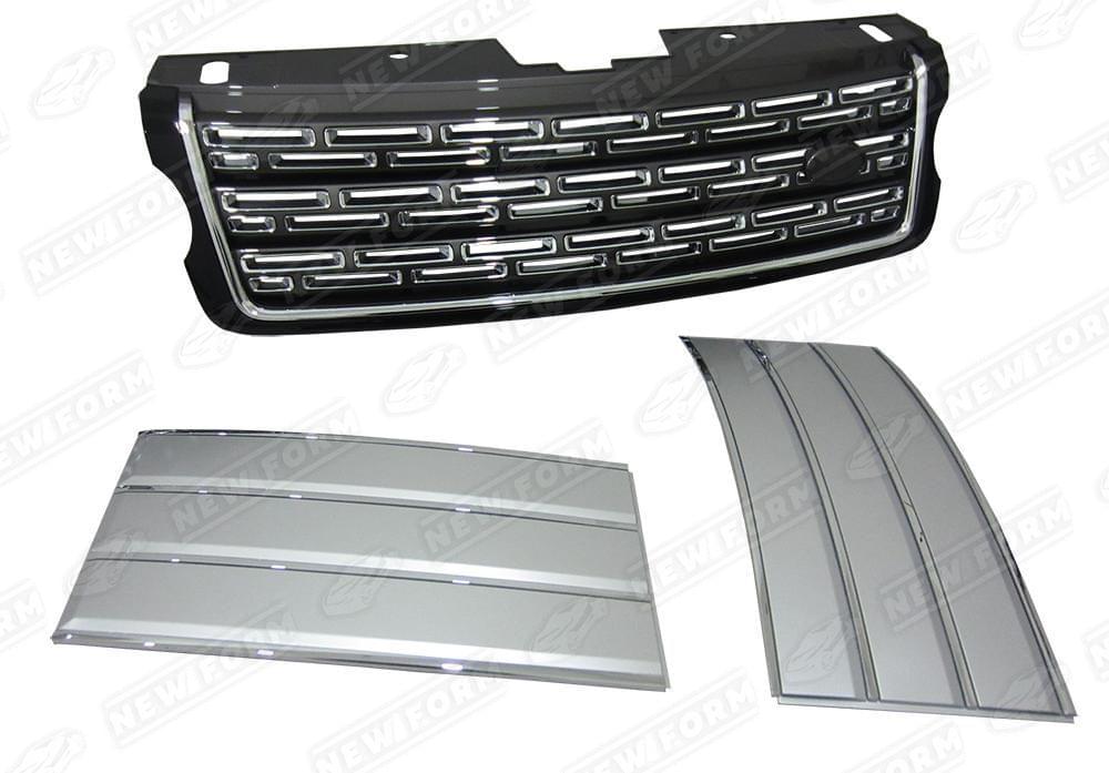 Решетка радиатора с жабрами Autobiography серебро для автомобилей Range Rover Vogue. Данная решетка радиатора предназначена для установки на автомобили Range Rover Vogue с 2012 по 2017 год выпуска. Решетка радиатора и боковые жабры устанавливаются в штатные места без доработок. Решетка радиатора и жабры выполнены в серебристом цвете.