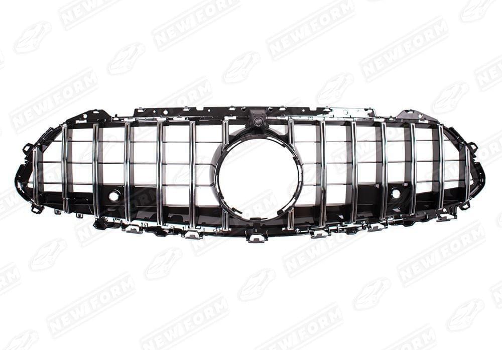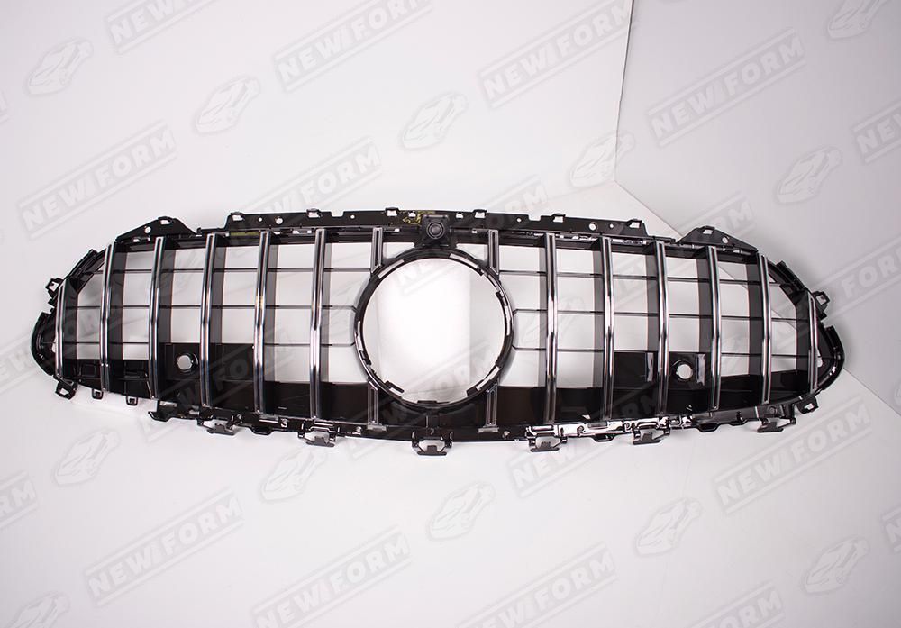 Решетка радиатора AMG GT хром для автомобилей Mercedes CLS C257. Данная решетка радиатора предназначена для установки на автомобили Mercedes CLS С257 с 2017 года выпуска как с установленной передней камерой, так и без нее. Решетка может быть установлена как на автомобили в AMG пакете, так и на обычную версию. Решетка радиатора AMG GT устанавливается четко в штатные места переднего бампера без доработок. Решетка радиатора выполнена в цвете хром.