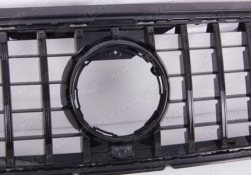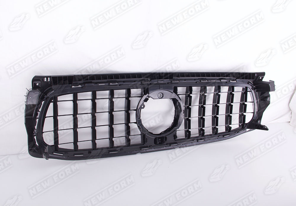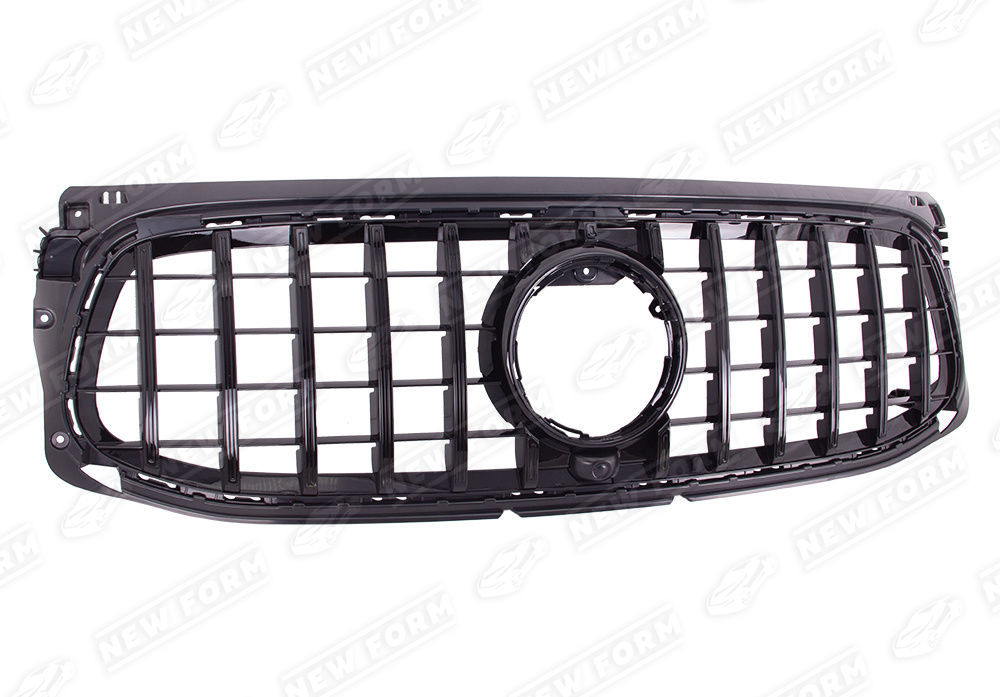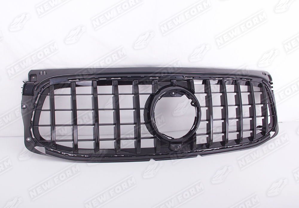 Решетка радиатора AMG GT черная для автомобилей Mercedes GLB X247 в AMG пакете. Данная решетка радиатора предназначена для установки на автомобили Mercedes GLB X247 с 2019 года выпуска в AMG пакете. Решетка радиатора AMG GT устанавливается в штатные места переднего бампера без доработок. Решетка радиатора выполнена в черном цвете с черной рамкой.