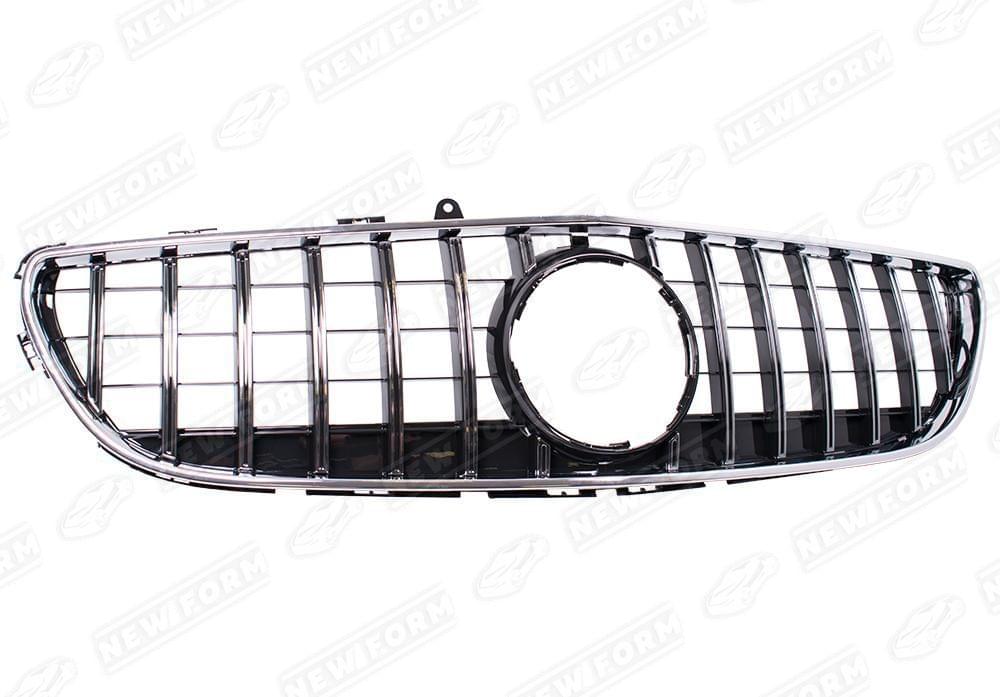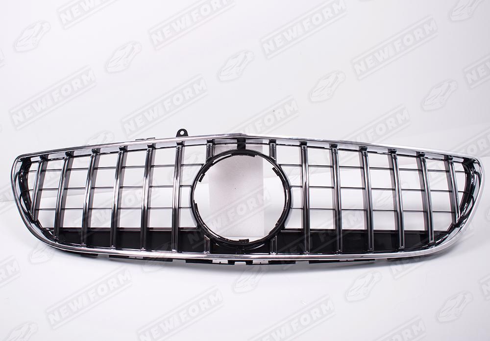 Решетка радиатора AMG GT хром для автомобилей Mercedes CLS W218 рестайлинг. Данная решетка радиатора предназначена для установки на автомобили Mercedes CLS W218 рестайлинг с 2014 по 2017 год выпуска без передней камеры. Решетка может быть установлена как на автомобили в AMG пакете, так и на обычную версию. Решетка радиатора AMG GT устанавливается в штатные места переднего бампера без доработок. Решетка радиатора выполнена в цвете хром.