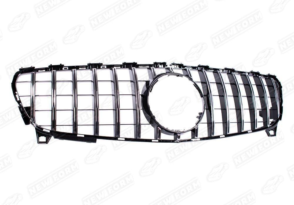 Решетка радиатора AMG GT хром для автомобилей Mercedes A-class W176. Данная решетка радиатора предназначена для установки на автомобили Mercedes A-class W176 с 2015 по 2017 год выпуска. Решетка радиатора устанавливается в штатные места без доработок. Решетка радиатора выполнена в цвете хром.
