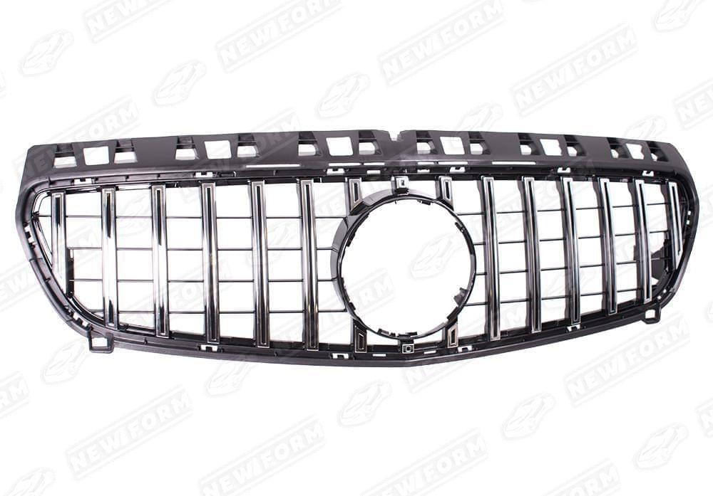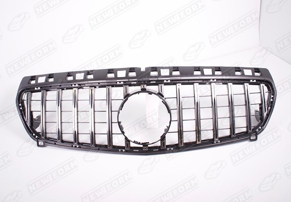 Решетка радиатора AMG GT хром для автомобилей Mercedes A-class W176. Данная решетка радиатора предназначена для установки на автомобили Mercedes A-class W176 с 2012 по 2015 год выпуска. Решетка радиатора устанавливается в штатные места без доработок. Решетка радиатора выполнена в цвете хром.