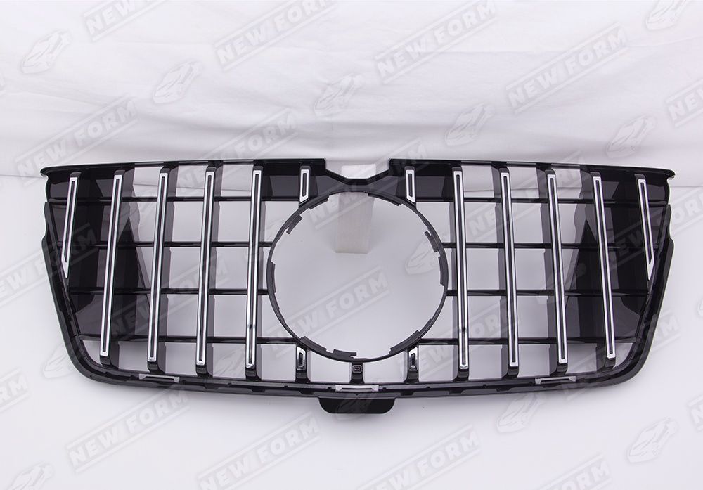 Решетка радиатора AMG GT хром для автомобилей Mercedes GL X164 рестайлинг. Данная решетка радиатора предназначена для установки на автомобили Mercedes GL X164 с 2009 по 2012 год выпуска. Решетка радиатора AMG GT выполнена из оригинальных материалов. Решетка радиатора устанавливается четко в штатные места переднего бампера автомобиля без доработок. Решетка радиатора выполнена в цвете хром.