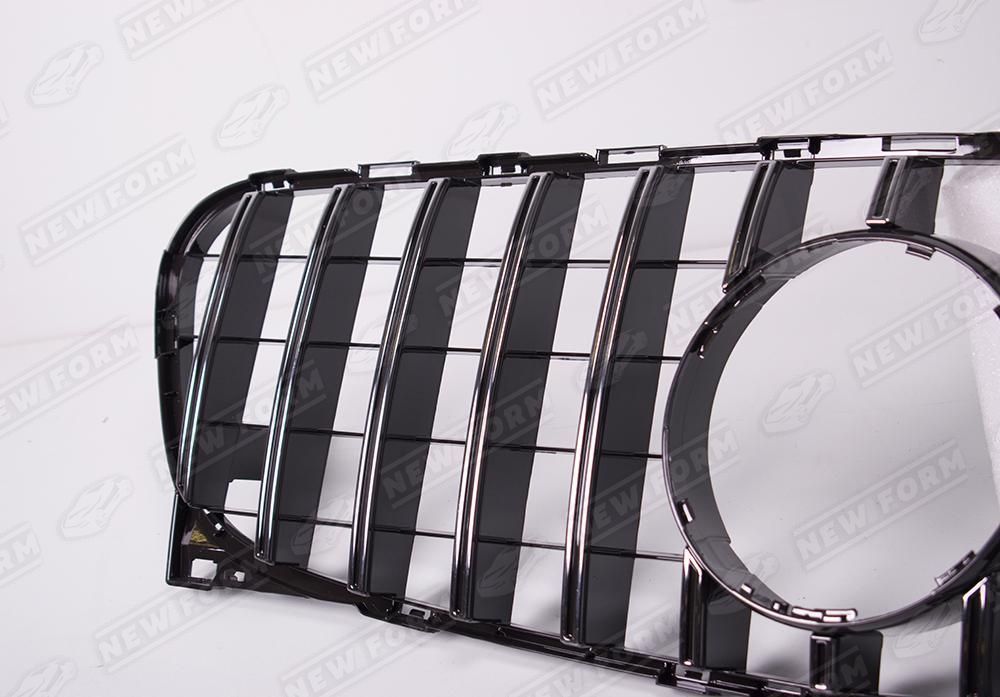Решетка радиатора AMG GT хром для автомобилей Mercedes GLA X156. Данная решетка радиатора предназначена для установки на автомобили Mercedes GLA X156 с 2013 по 2017 год выпуска. Решетка радиатора устанавливается четко в штатные места переднего бампера без доработок. Решетка радиатора выполнена в цвете хром.