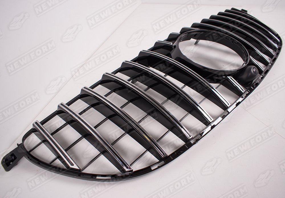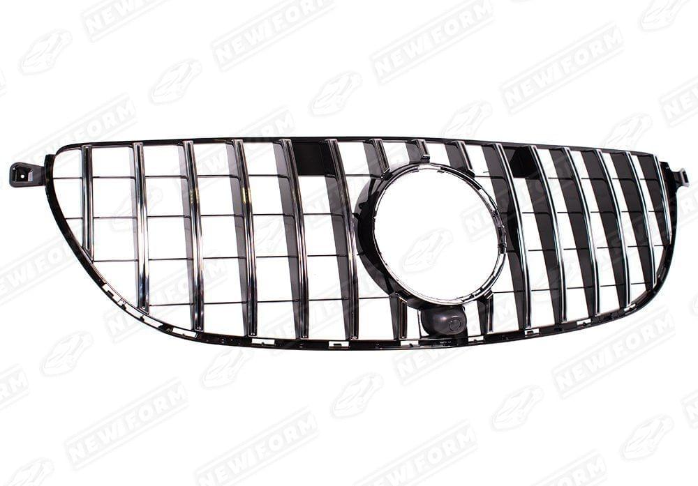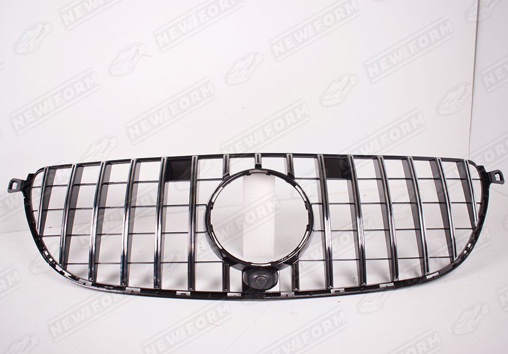 Решетка радиатора AMG GT хром для автомобилей Mercedes GLE Coupe C292 6.3 AMG. Данная решетка радиатора предназначена для установки на автомобили Mercedes GLE Coupe C292 с 2015 по 2019 год версии 6.3 AMG или с установленным передним бампером 6.3 AMG. Решетка радиатора устанавливается четко в штатные места переднего бампера 6.3 AMG без доработок. Решетка радиатора выполнена в цвете хром.