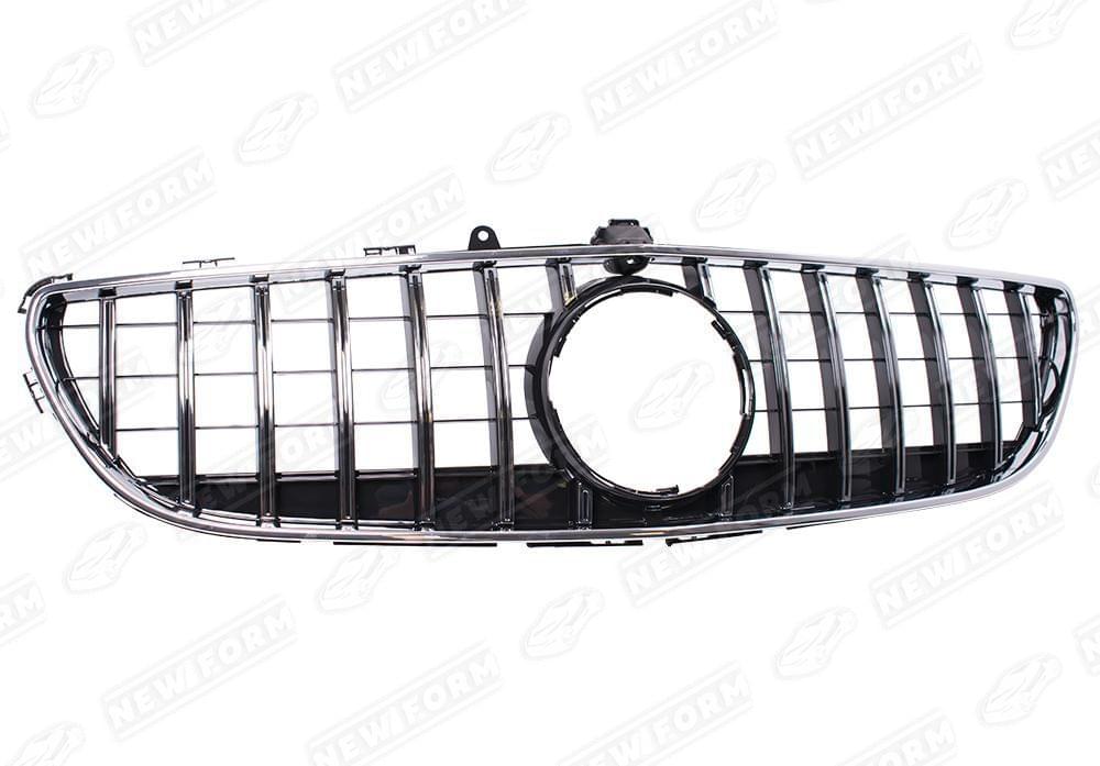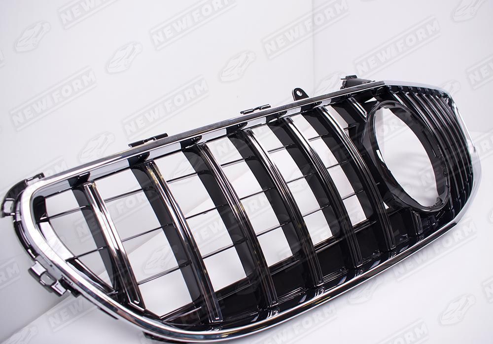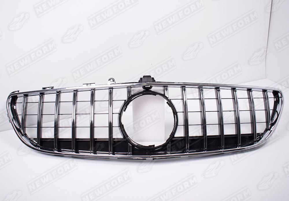 Решетка радиатора AMG GT хром для автомобилей Mercedes CLS W218 рестайлинг. Данная решетка радиатора предназначена для установки на автомобили Mercedes CLS W218 рестайлинг с 2014 по 2017 год выпуска с установленной передней камерой. Решетка может быть установлена как на автомобили в AMG пакете, так и на обычную версию. Решетка радиатора AMG GT устанавливается в штатные места переднего бампера без доработок. Решетка радиатора выполнена в цвете хром.