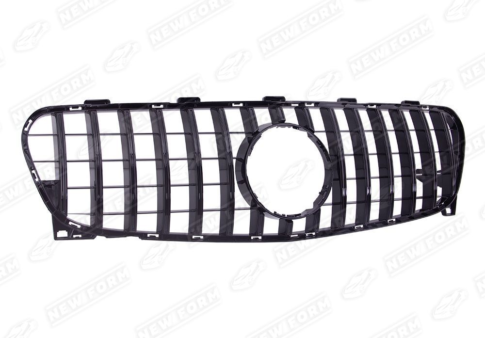 Решетка радиатора AMG GT черная для автомобилей Mercedes GLA X156 рестайлинг. Данная решетка радиатора предназначена для установки на автомобили Mercedes GLA X156 рестайлинг с 2017 года выпуска. Решетка радиатора устанавливается четко в штатные места переднего бампера без доработок. Решетка радиатора выполнена в черном цвете.