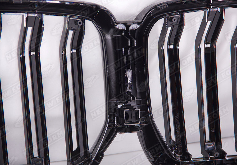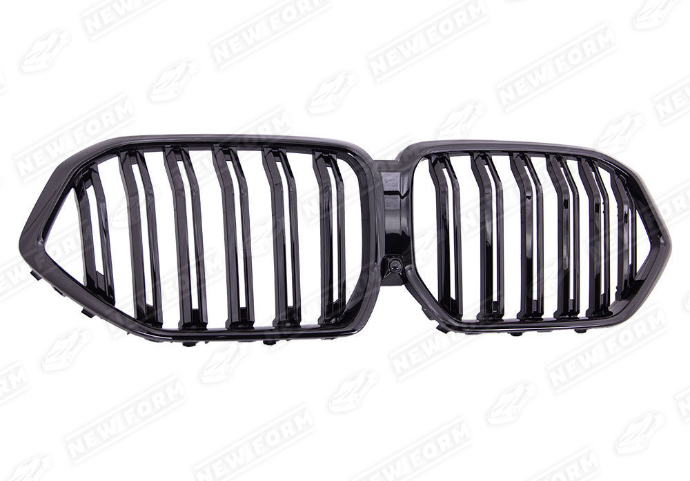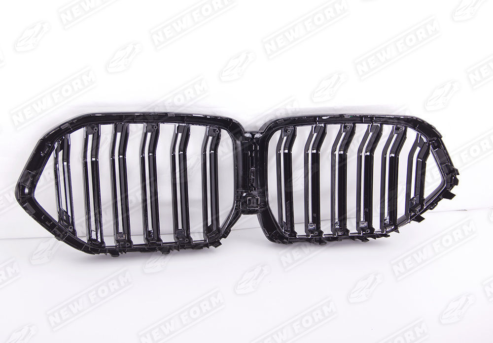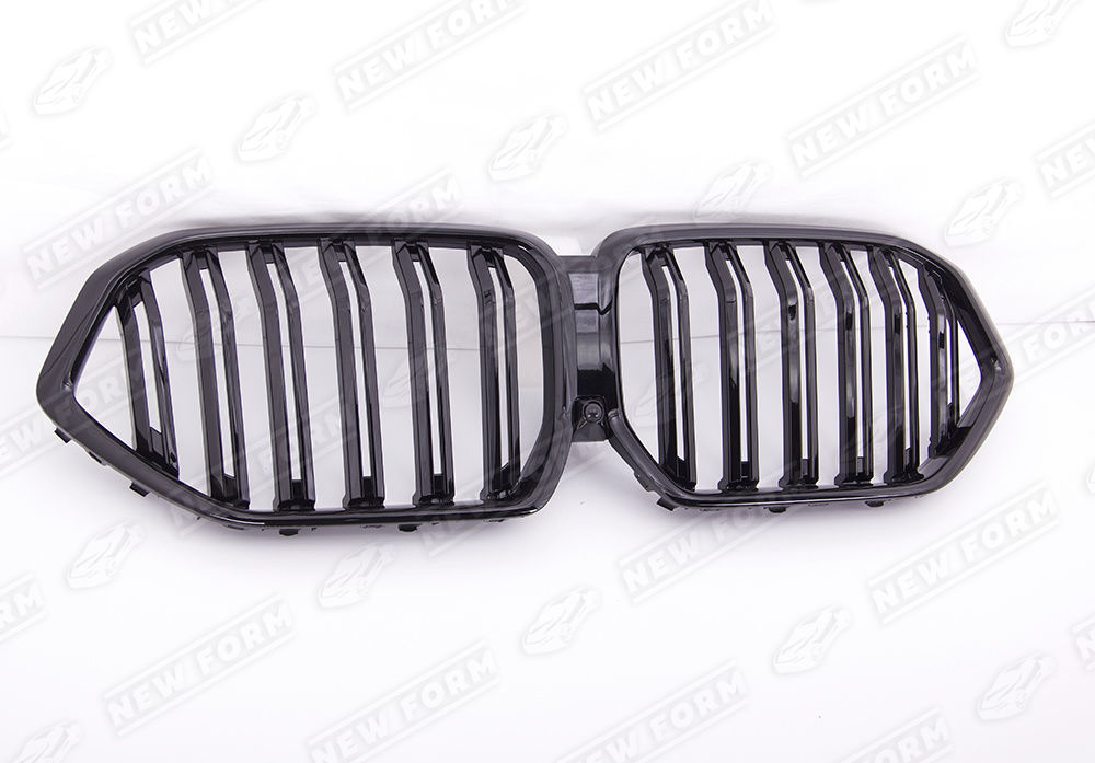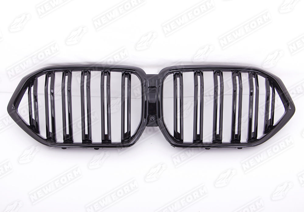 Решетка радиатора M7 для автомобилей BMW X6 G06. Данная решетка радиатора предназначена для установки на автомобили BMW X6 G06 2019 года выпуска. Решетка радиатора устанавливается четко в штатные места переднего бампера без доработок. Решетка радиатора выполнена в черном глянцевом цвете.