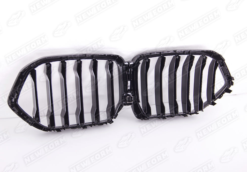 Решетка радиатора M Performance для автомобилей BMW X6 G06. Данная решетка радиатора предназначена для установки на автомобили BMW X6 G06 2019 года выпуска. Решетка радиатора устанавливается четко в штатные места переднего бампера без доработок. Решетка радиатора выполнена в черном глянцевом цвете.