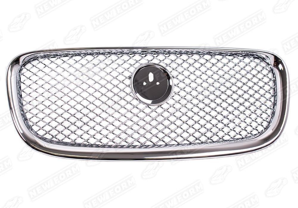 Решетка радиатора хром для автомобилей Jaguar XF. Данная решетка радиатора предназначена для установки на автомобили Jaguar XF с 2011 по 2015 год выпуска. Решетка радиатора устанавливается в штатные места без доработок.