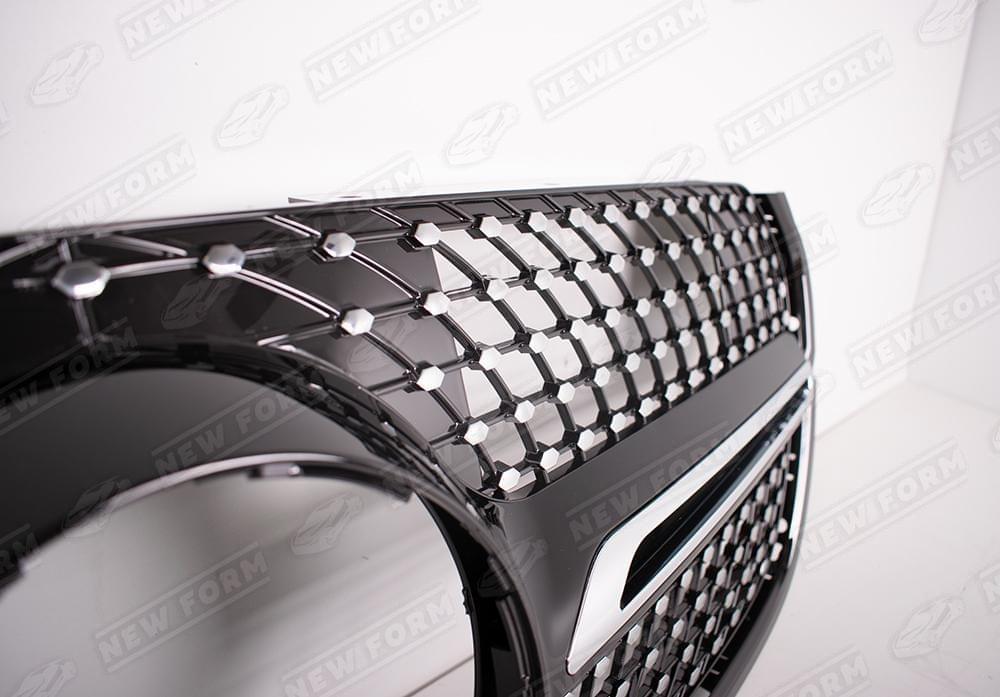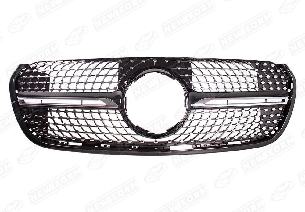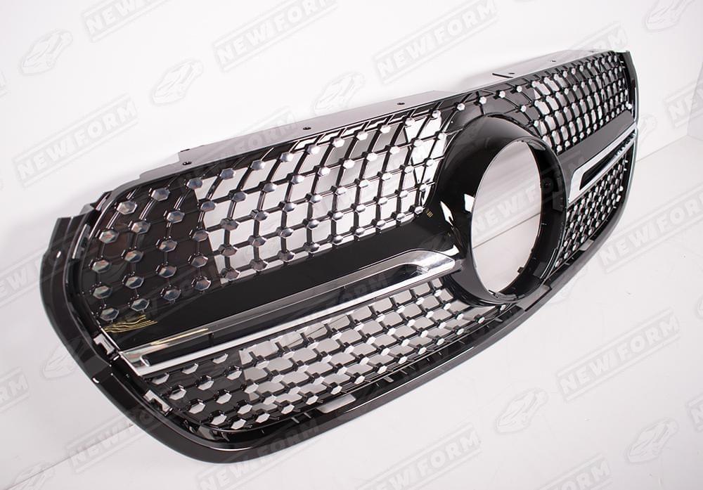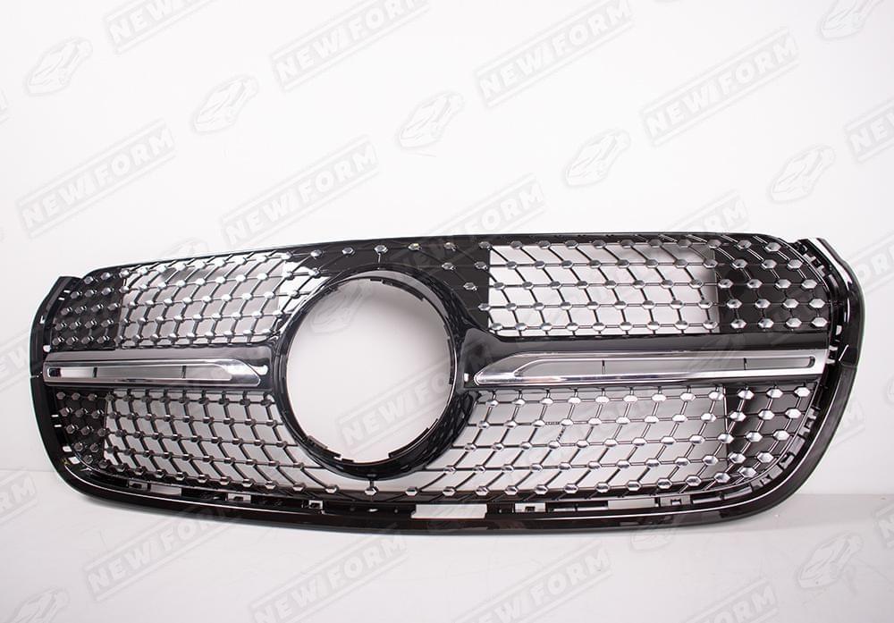 Решетка радиатора Diamond Sport черная для автомобилей Mercedes X-class. Данная решетка радиатора предназначена для установки на автомобили Mercedes X-class с 2017 года выпуска. Решетка радиатора устанавливается в штатные места без доработок. Решетка радиатора выполнена в черном цвете. На решетке установлена защитная сетка.