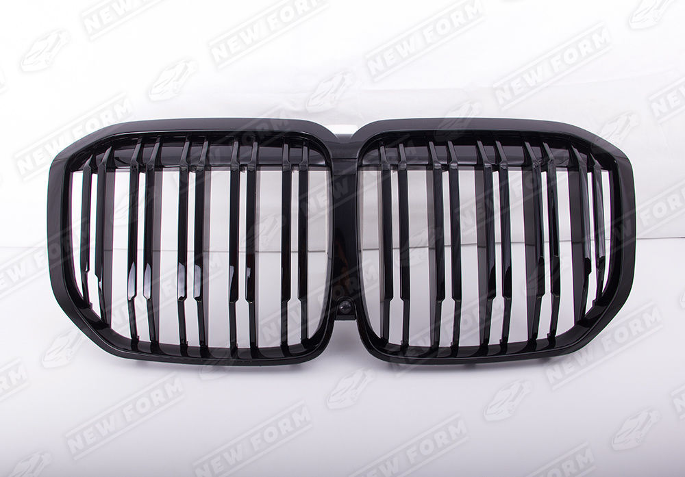 Решетка радиатора М для автомобилей BMW X7 G07. Данная решетка радиатора предназначена для установки на автомобили BMW X7 G07 с 2018 года выпуска. Решетка радиатора устанавливается четко в штатные места переднего бампера без доработок. Решетка радиатора выполнена в черном глянцевом цвете.