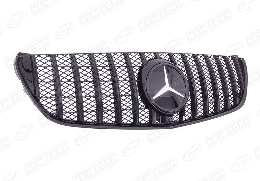 В комплект входит: решетка радиатора AMG GT черная, эмблема стеклянная Mercedes черная.