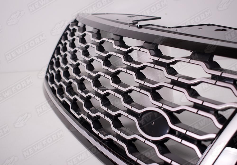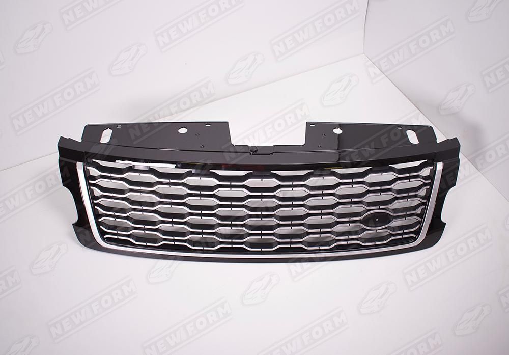 Решетка радиатора серебристая для автомобилей Range Rover Vogue. Данная решетка радиатора предназначена для установки на автомобили Range Rover Vogue с 2017 года выпуска. Решетка радиатора устанавливается в штатные места без доработок.