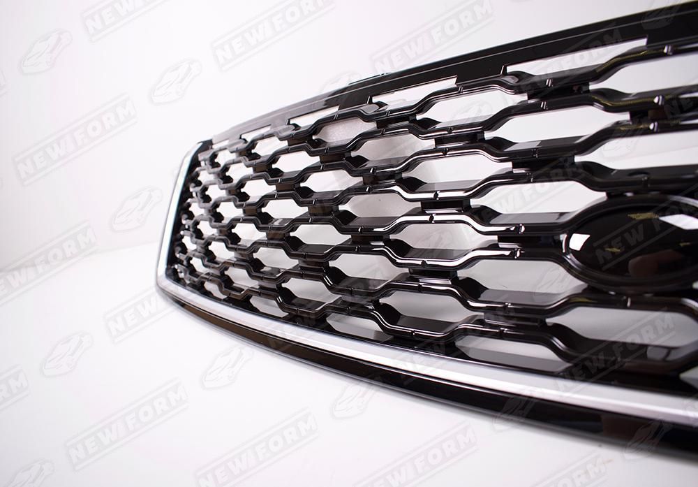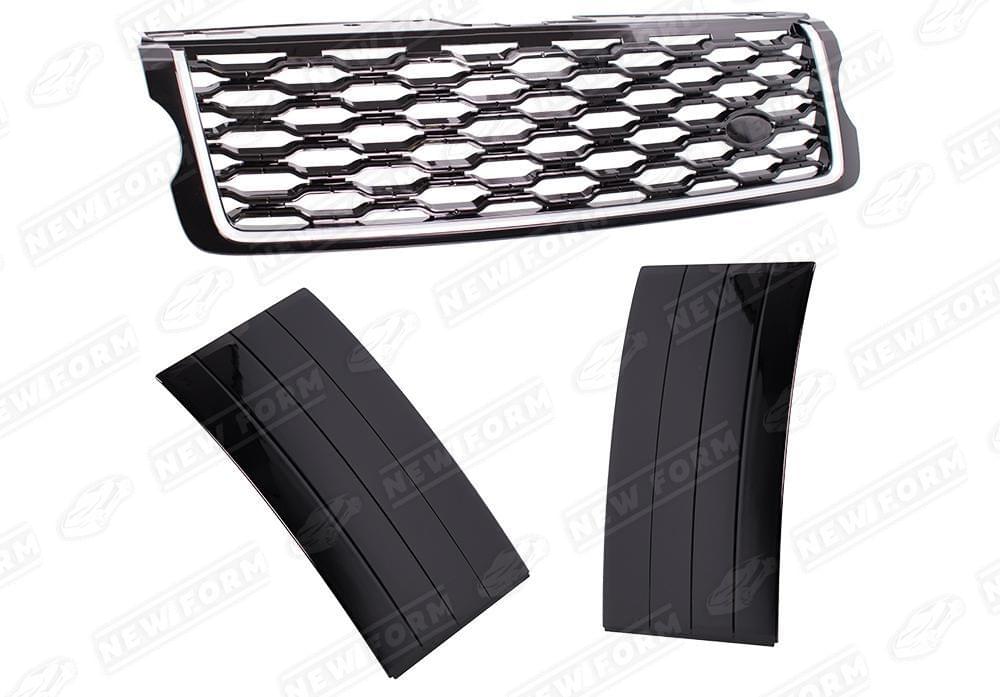 Решетка радиатора серый кант черная сетка с жабрами для автомобилей Range Rover Vogue. Данная решетка радиатора предназначена для установки на автомобили Range Rover Vogue с 2012 по 2017 год выпуска. Решетка радиатора и боковые жабры устанавливаются в штатные места без доработок.