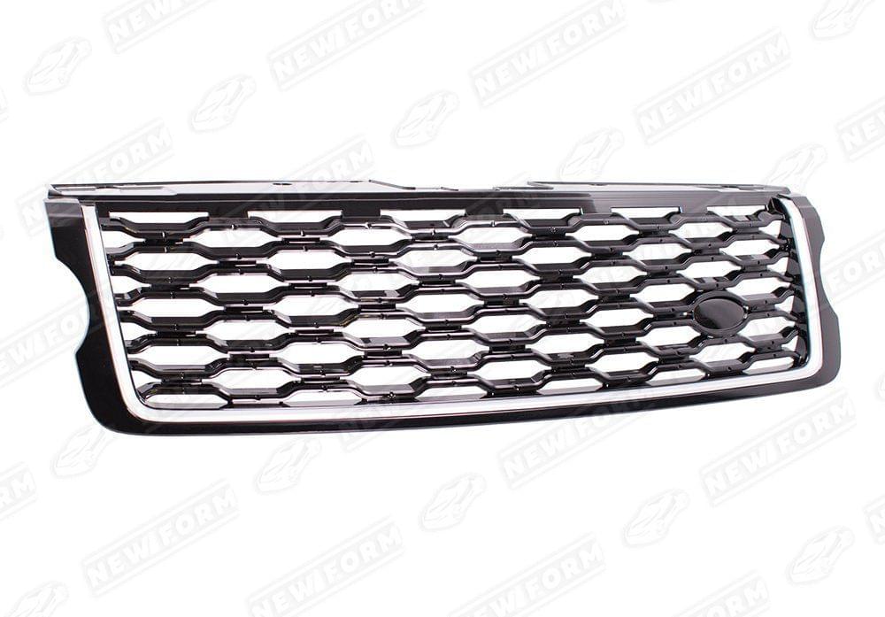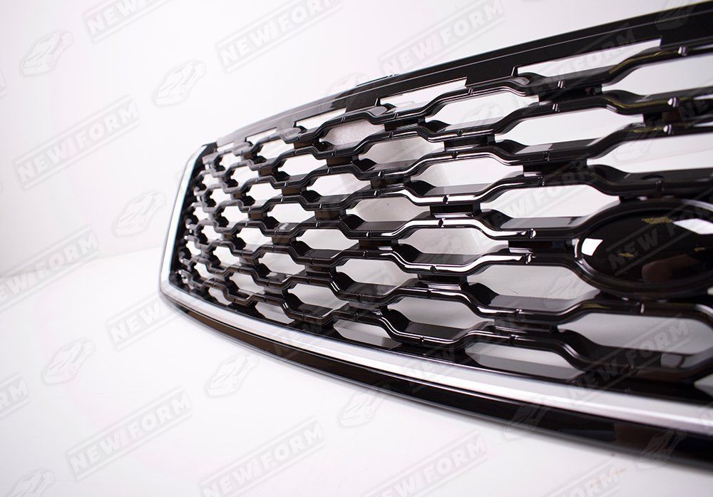 Решетка радиатора стиль 2018 серый кант черная сетка для автомобилей Range Rover Vogue. Данная решетка радиатора предназначена для установки на автомобили Range Rover Vogue с 2012 по 2017 год выпуска. Решетка радиатора позволяет переделать облик стандартной версии в версию 2018 года выпуска. Решетка радиатора устанавливается в штатные места без доработок.