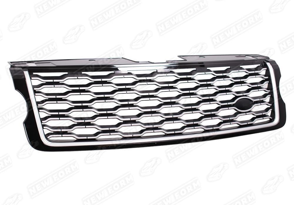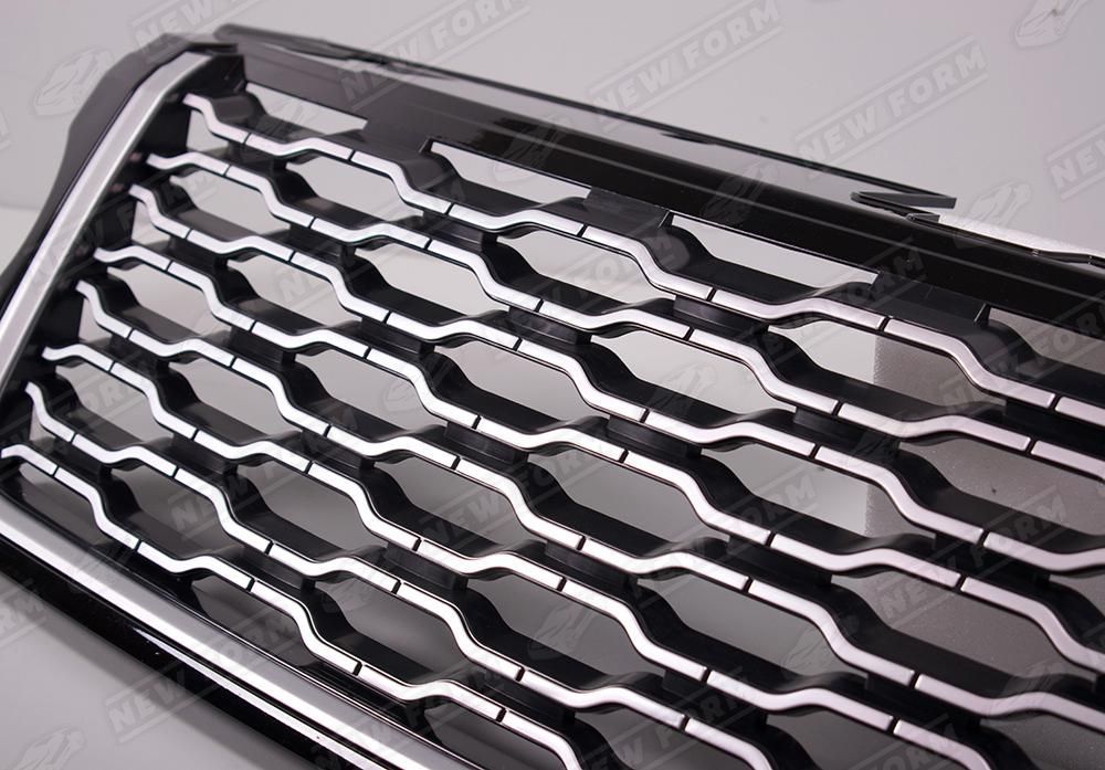 Решетка радиатора стиль 2018 серебряная для автомобилей Range Rover Vogue. Данная решетка радиатора предназначена для установки на автомобили Range Rover Vogue с 2012 по 2017 год выпуска. Решетка радиатора позволяет переделать облик стандартной версии в версию 2018 года выпуска. Решетка радиатора устанавливается в штатные места без доработок.