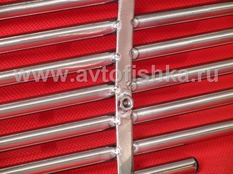 Диаметр трубки 10 мм, материал - полированная нержавеющая сталь марки AISI304 Декоративная решетка изготовлена из нержавеющей полированной стали марки AISI 304 и не подвержена воздействию ржавчины. Гарантия 3 года. Устанавливается просто на штатную решетку с использованием дополнительного крепежа. Крепеж прилагается в комплекте. Решетка защищает радиатор от повреждений в результате попадания камней, песка, грязи и др., и служит дополнительным элементом внешнего тюнинга Вашего автомобиля.