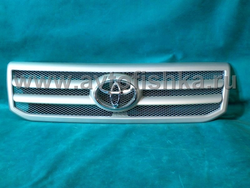 —Toyota Land Cruiser Prado 120 (02-) решетка радиатора серебристая с горизонтальными ламелями.