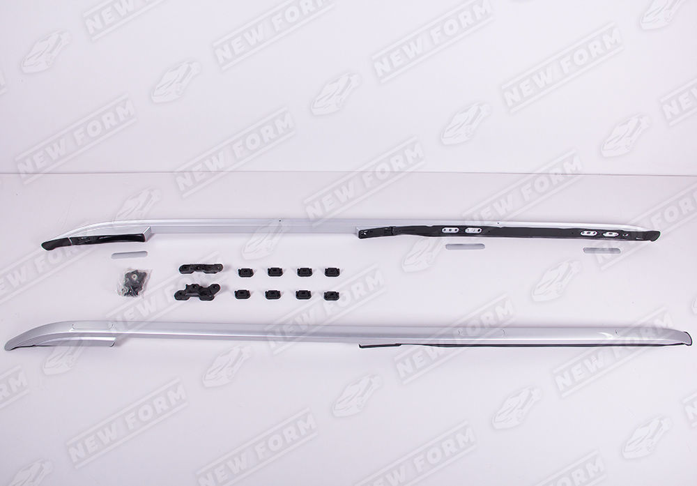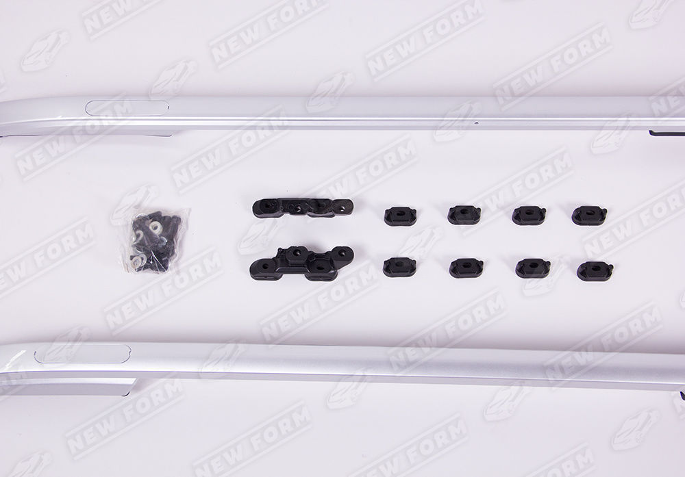 В комплект входит: рейлинги серебристые две штуки, уплотнительные резинки, заглушки, комплект крепежа.