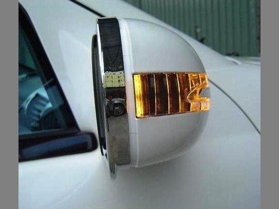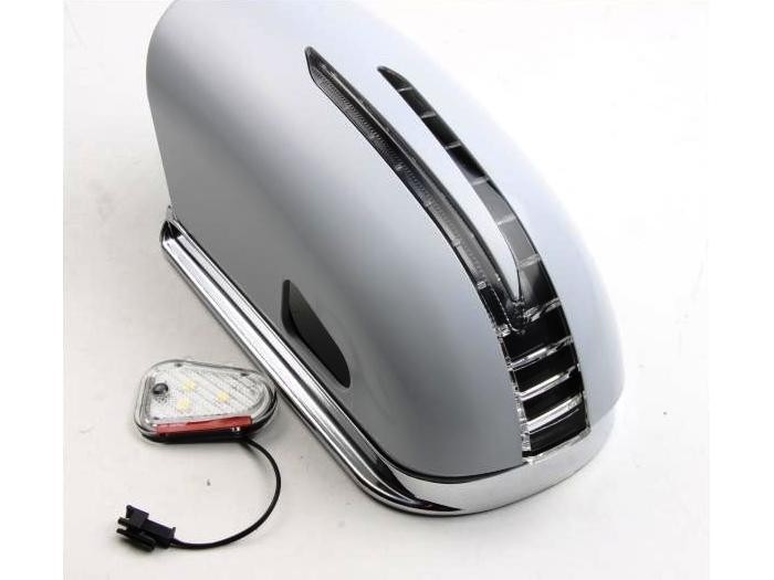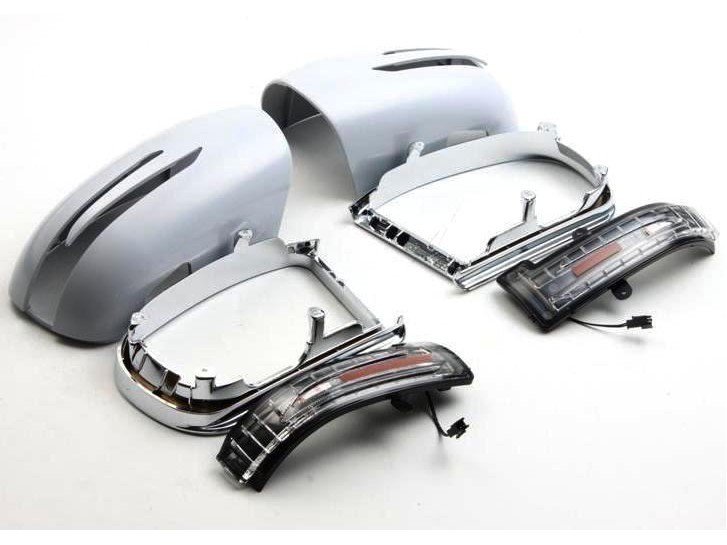 Mercedes W211, W203 (00-06) корпуса боковых зеркал под покраску, со светодиодными поворотниками и подсветкой Welcome, хромированная рамка, дизайн SL-class, комплект 2 шт.