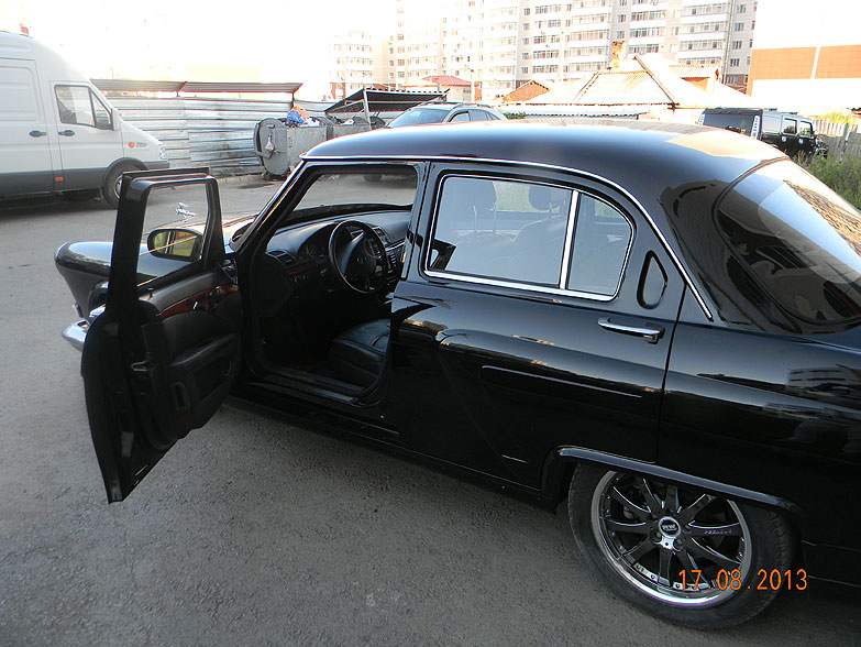 Под конец осени 2012 года трансформация кузова была завершена. Создатели проекта не занизили высоту крыши, как это обычно делают в подобных случаях, поэтому автомобиль сберег свои аутентичные и изысканные пропорции. Салон “Волги” получил немецкие качественные сиденья, руль, консоль и переднюю панель от Mercedes-Benz. Также, успешно получилось соединить карту дверей W211 с внешней панелью кузова. Установили 5-литровый восьмицилиндровый бензиновый двигатель, с запасом в 306 литров, который отлично работает в паре с коробкой автомат. Естественно динамика у транспорта будет соответствующая, и автомобиль будет ускоряться до 100 км/ч, за более чем 6 секунд, развивая при этом скорость 250 км/ч.
